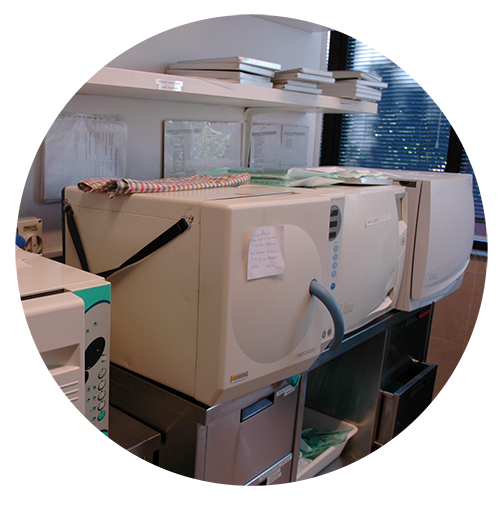Sono in funzione per questo obiettivo 4 autoclavi di classe B a vapore acqueo (cioè capaci di sterilizzare anche oggetti cavi), controllate con certificazioni di sterilizzazione ogni 3 mesi (come da normativa vigente). Un locale apposito è dedicato alla sterilizzazione di tutto lo strumentario.